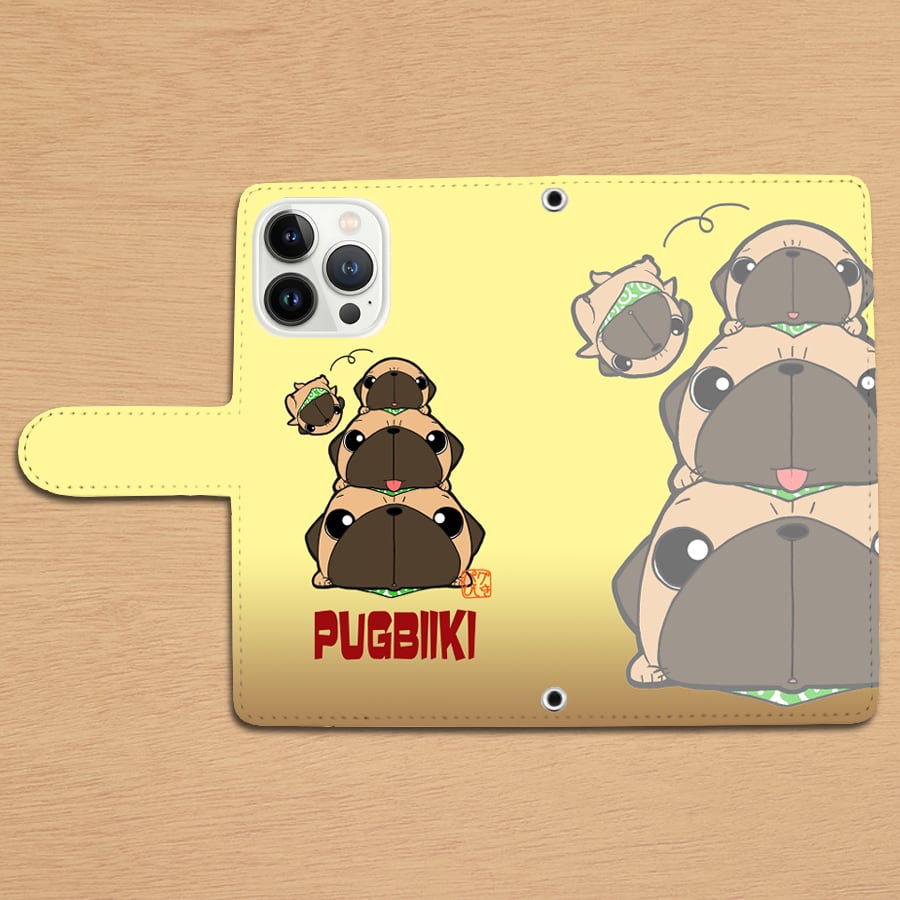 スタンド付き 両面印刷 手帳型 iphoneケース パグピラミッド(フォーン)