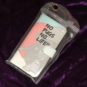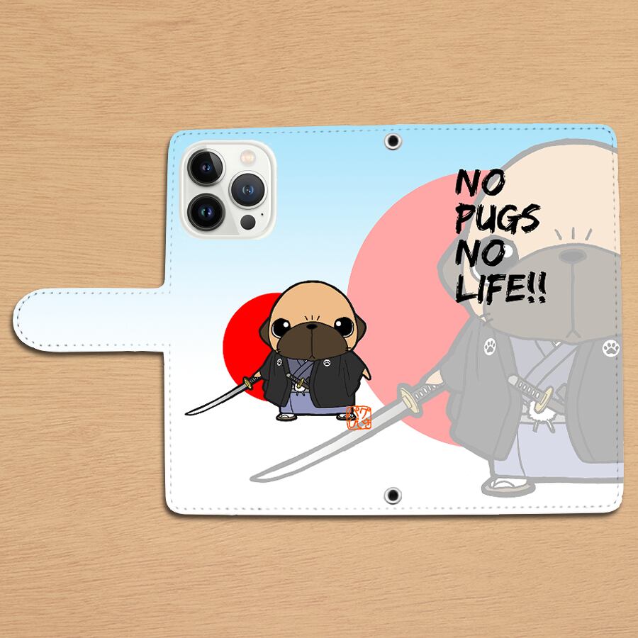 スタンド付き 両面印刷 手帳型 iphoneケース パグ侍(フォーン)